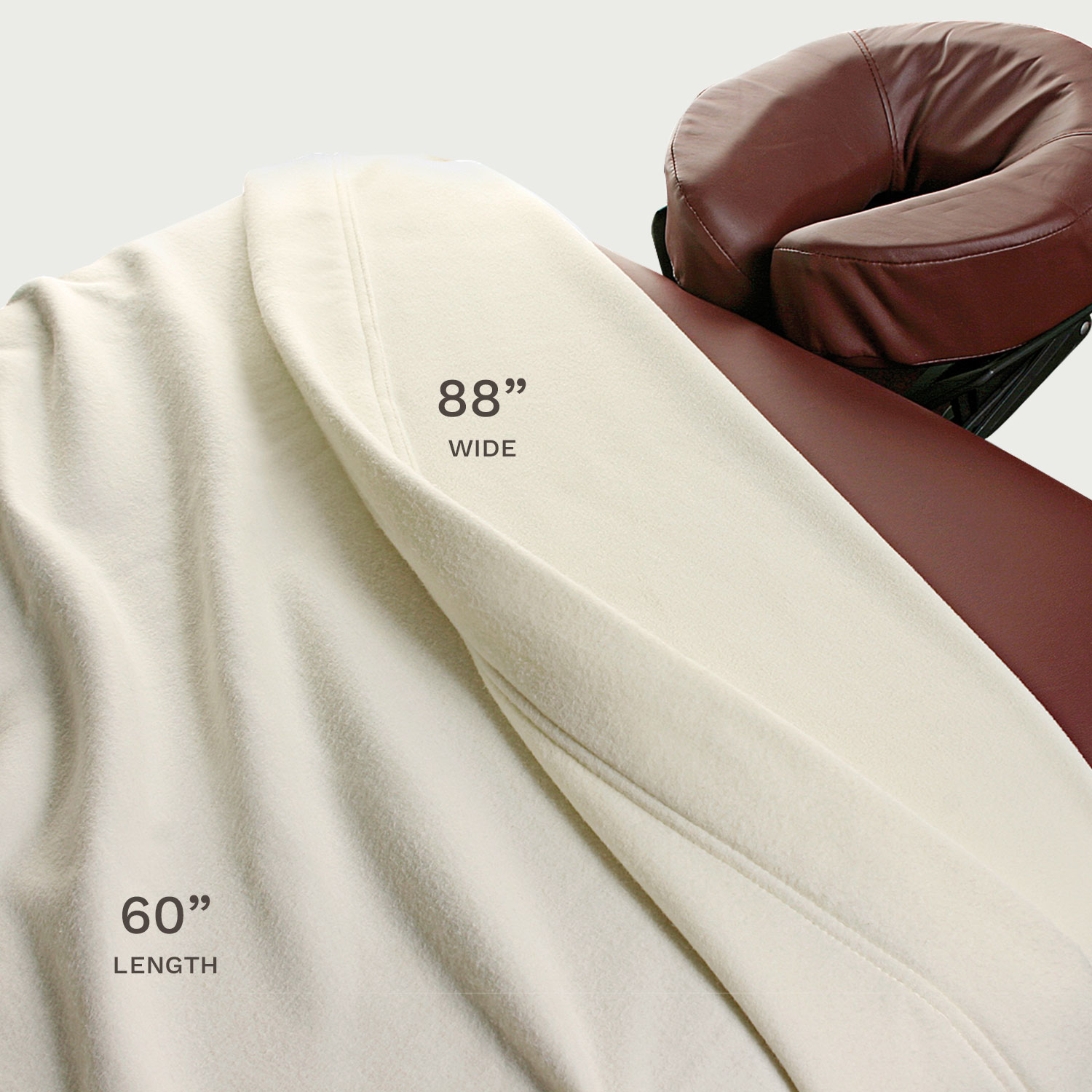 Lightweight blanket helps keep clients warm and relaxed before, during and after the treatment. Choose from natural or white. Machine washable. 60" L x 88" W.