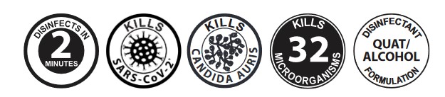 • Effective against Candida auris; on EPA List P, Antimicrobial Products Registered with EPA for Claims Against Candida auris3.